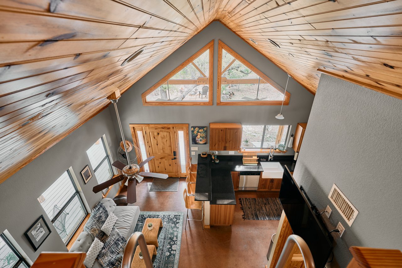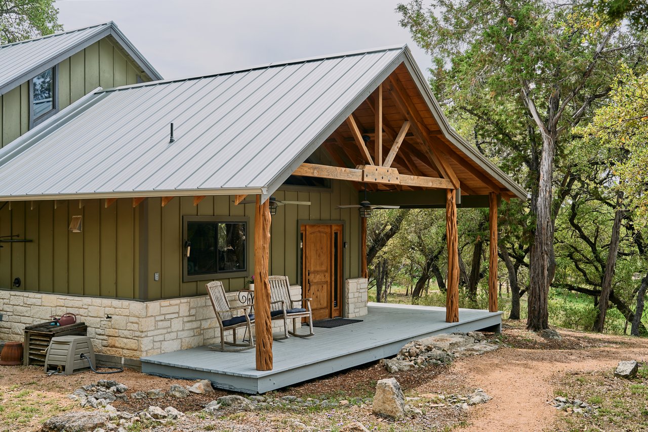 Prime, unrestricted land with utilities and infrastructure in place, The Flite Acres Ranch presents a rare investment and/or development opportunity in one of Texas' most famed Hill Country destinations. Peacefully tucked at the end of desirable Flite Acres Road is a fully fenced and gated, ag-exempt property that spans just shy of 30 gorgeous shady acres available for immediate enjoyment. In addition to gently rolling topography and stunning views of the Wimberley Valley, there is a sprawling caliche road connecting the property and allowing ease of access for hiking, biking, horseback riding and driving. It also offers two access points -- both to Flite Acres Road and Hoots Holler Road -- making it highly versatile for a range of uses.The land features a mix of cleared and lightly wooded areas as well as multiple flat build sites suitable for luxury homes, tiny home communities, event venues or short-term rental retreats. The current charming cabin comes fully furnished with recent appliances and improvements that include a new refrigerator, countertops, standing seam metal roof, water well pump and A/C. Enjoy it yourself or use it as a turnkey vacation rental: it has 2 bedrooms and a loft that can accommodate up 8 guests. Other amenities already onsite include a well-maintained hot tub, fire pit, Weber grill, seated mower, tranquil pond filled with blue gill perch, climate-controlled shed with shelving and a well-constructed, shaded pavilion with bathroom facilities completed in 2022. Unrestricted zoning means the possibilities are vast: create a boutique resort, develop a residential enclave, or hold long-term as a high-growth asset. Enjoy the convenience of being just 2 1/2 miles from all of the fun of downtown Wimberley, yet feel miles away from it all in your own private sanctuary. Adding even more value, the property is only minutes away from Blue Hole and Cypress Falls as well as being directly across the street from the Blanco River.